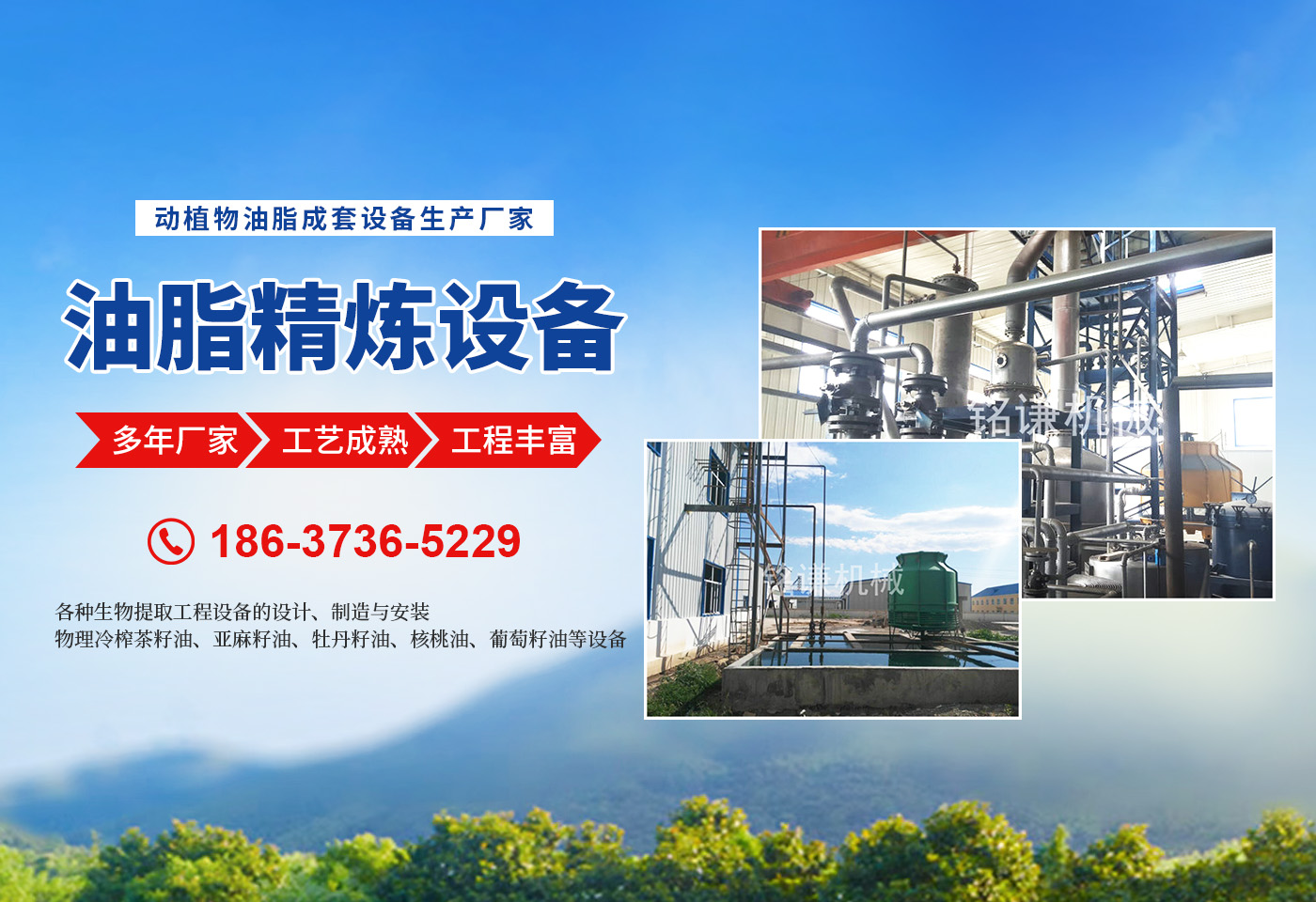 河南省銘謙機械設備有限公司,是集開發、科研、生產、安裝、調試、售后服務為一體的現代化企業。 我公司擁有優良的技術設備,為動物油熬煉設備,無公害化處理設備,核桃油設備,茶籽油設備,牡丹籽油設備,牡丹籽油機械產品的品質提供了有力的技術和質量保證。 ★油料預處理、榨油成套設備的設計、制造與安裝?! 镉土辖鲈O備的設計、制造與安裝?! 锇脒B續,連續(化學)物理精煉設備的設計、制造與安裝。 ★茶籽油,牡丹籽油,核桃油,亞麻籽油,葡萄籽油的設備的設計、制造與安裝?! 锔鞣N生物提取工程設備的設計、制造與安裝?! 锔鞣N(豬、牛、羊、雞、鴨等)油廠熬制、精煉設備的設計、制造與安裝?! 餄庀阈突ㄉ?、菜籽油、茶籽油、亞麻籽油、葵花籽油等設備的設計、制造與安裝?! 镂锢砝湔ゲ枳延汀喡樽延?、牡丹籽油、核桃油、葡萄籽油等設備的設計、制造與安裝。 ★豆類清理設備、雜糧脫皮制粉設備、小麥制粉設備、大米加工流水線、小米加工流水線等設備的設計、制造與安裝。 ★各種過濾設備,化工設備的設計與制造。 我們以工藝和信譽求發展,以質量和設備求生存。堅持“質量為上,用戶為上”的宗旨為客戶提供完善的技術咨詢和售后服務。始終把產品質量作為企業生存、發展的主要要務,竭誠歡迎新老用戶光臨指導。